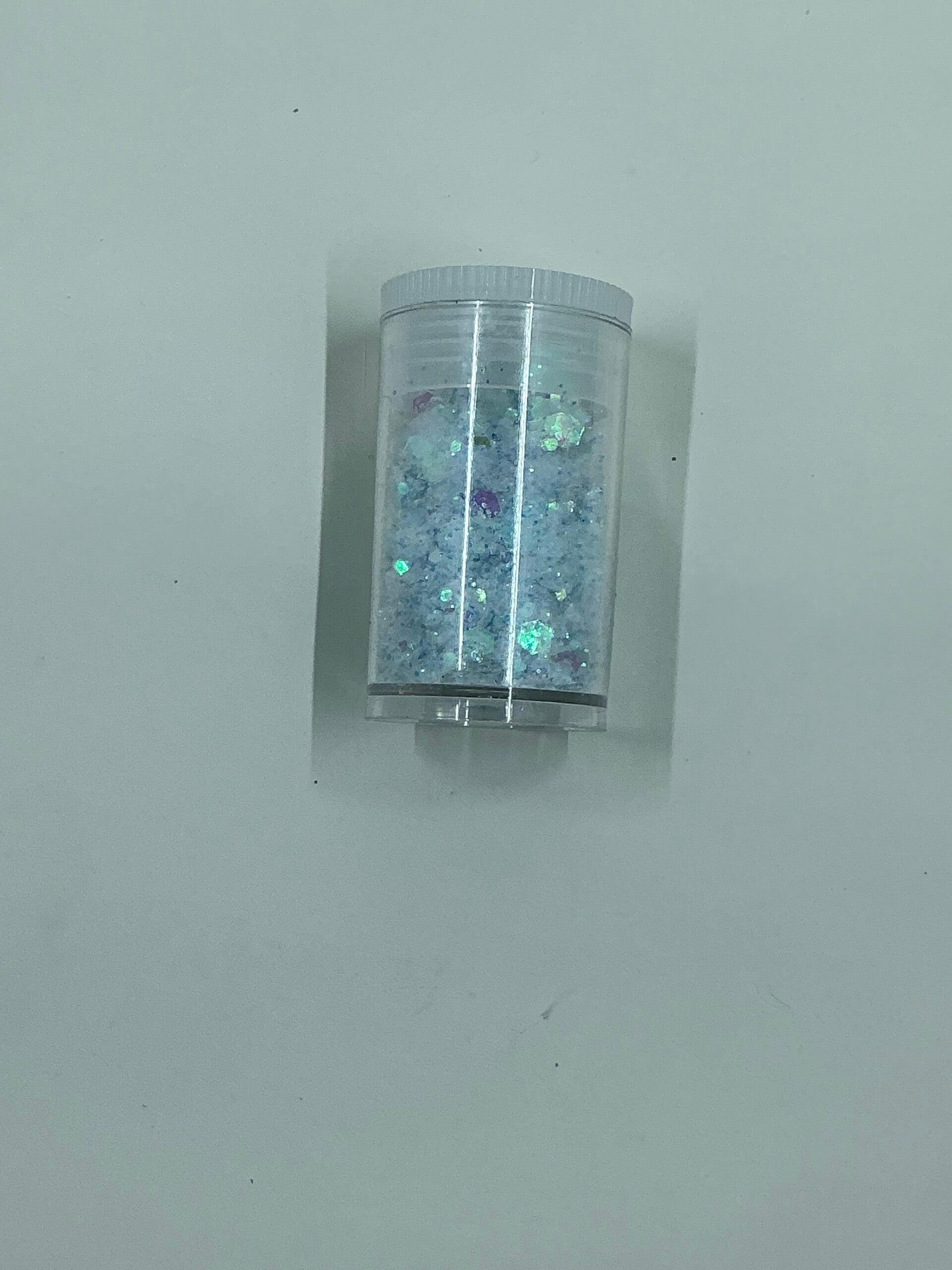 Bold, multidimensional flakes that create a dramatic, eye-catching sparkle. This option adds extra depth and movement for a fun, luxe snow globe effect.